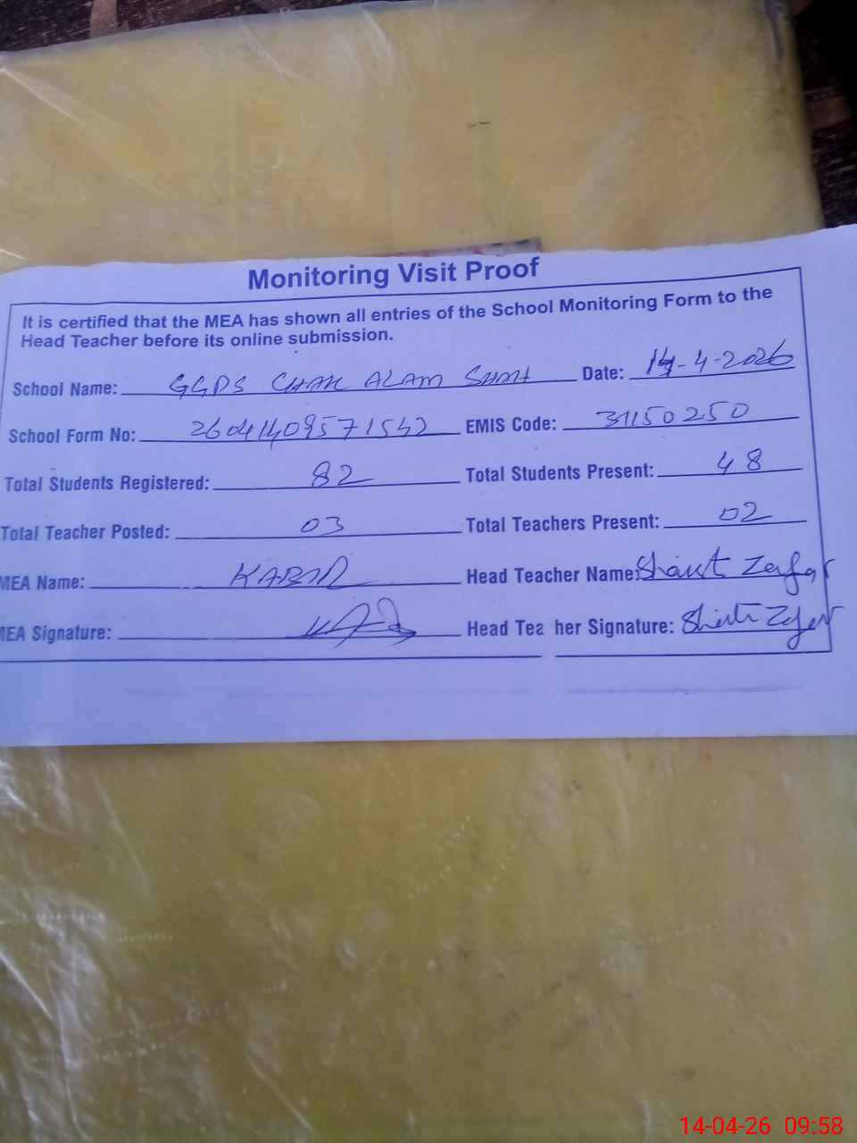 | EMIS Code: 31150250 | Name of School: GGPS CHAK ALAM SHAH | |||