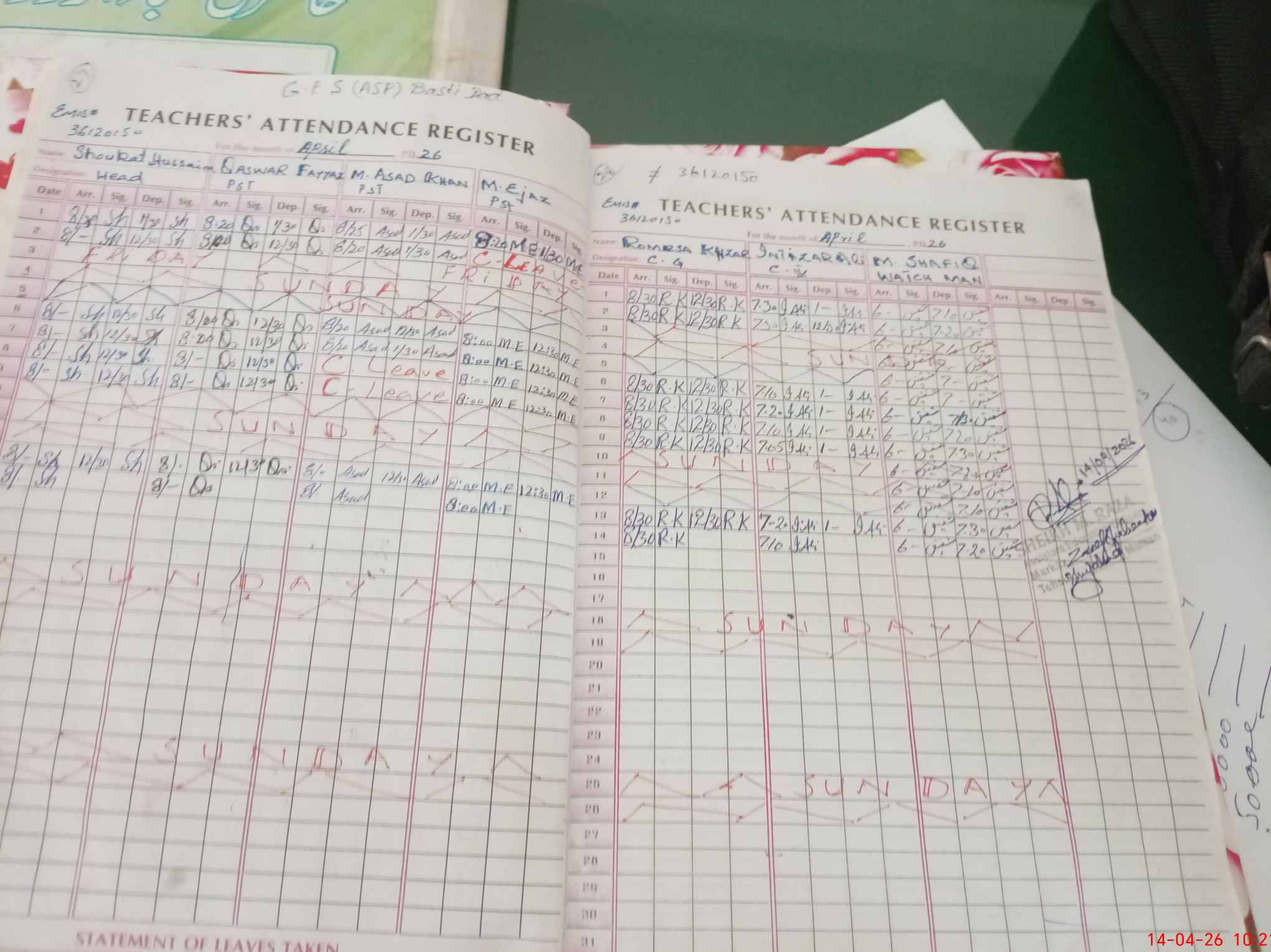 | Leave | Duty | Absent | Maternity | Medical | Ex- Pak |