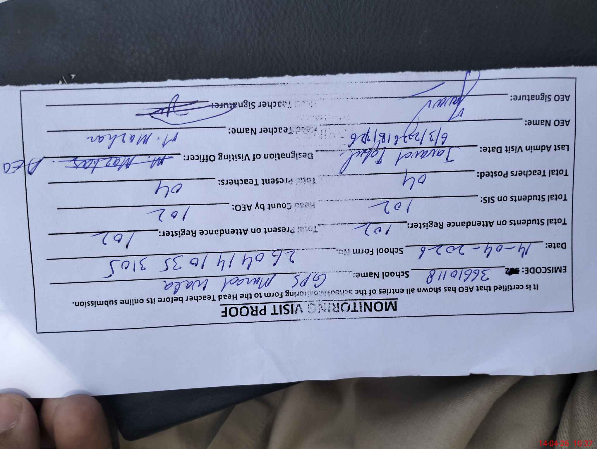 | Certified that this School was Inspected by the Undersigned MEA/DMO Today and the Information Stated Above is as Per Record. | |||||