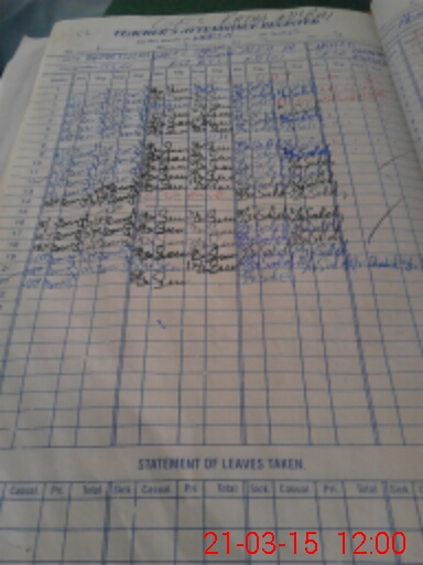 | CNIC | Full Name | Designation | R/C | Absence During Last Calender Month |