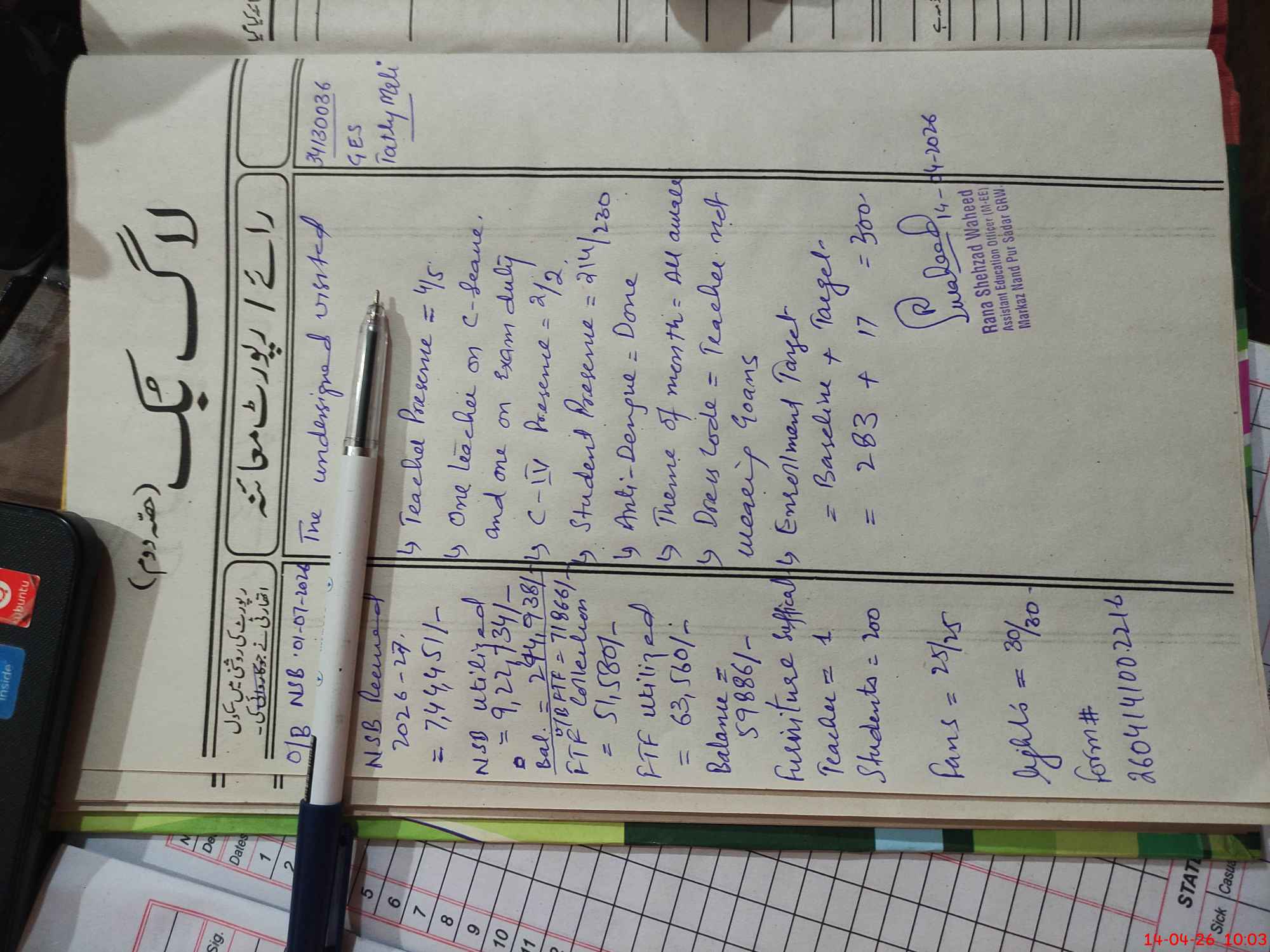 | Name: AK**** RA**** Designation: (School Headmaster's/Headmistress's) SSE Phone/Cell Number: 03**** |