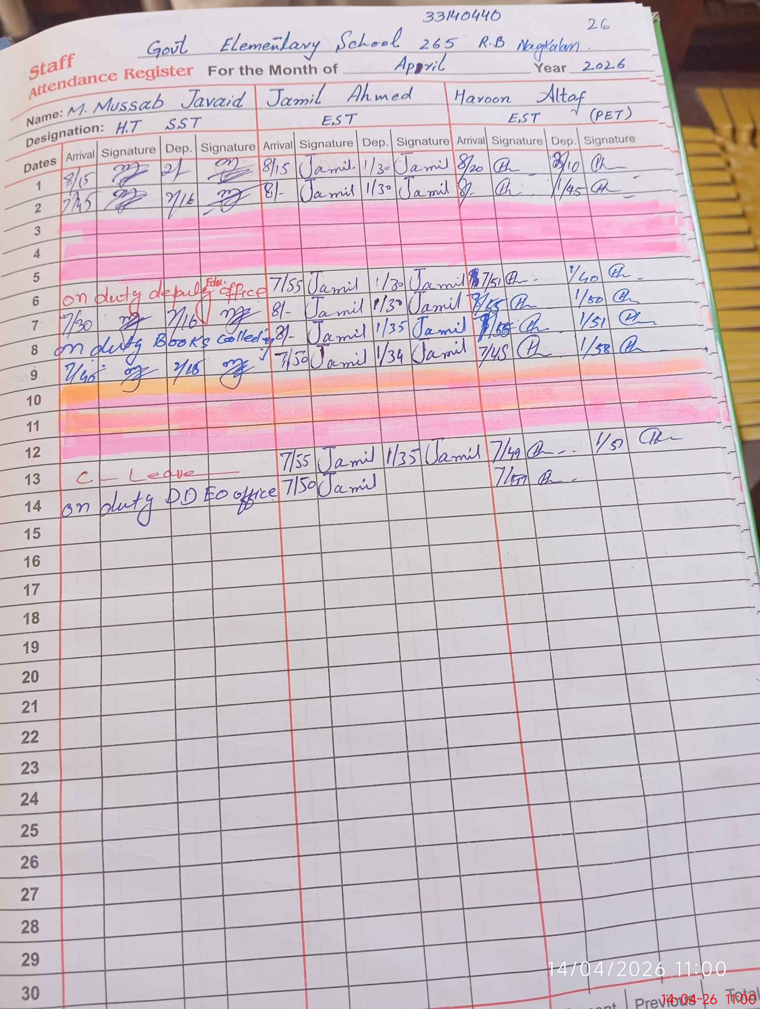 | 33**** | Mu**** Ar**** | PST Arts | Regular | 0 | 0 | 0 | 0 | 0 | 0 | 0 | 0 | 0 | Casual |