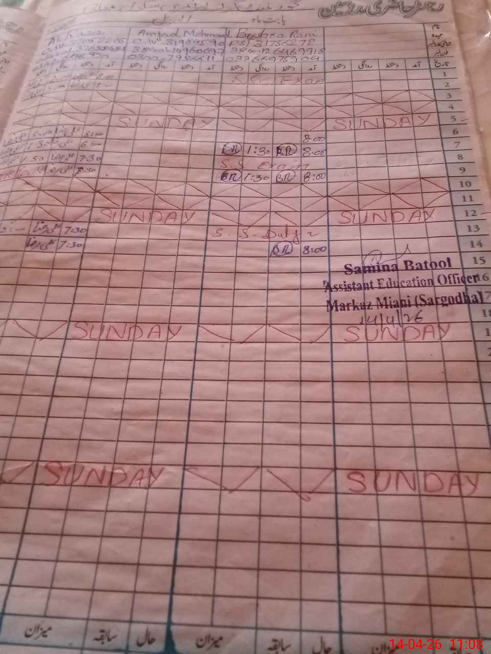 | CNIC | Full Name | Designation | R/C | Absence During Last Calender Month |