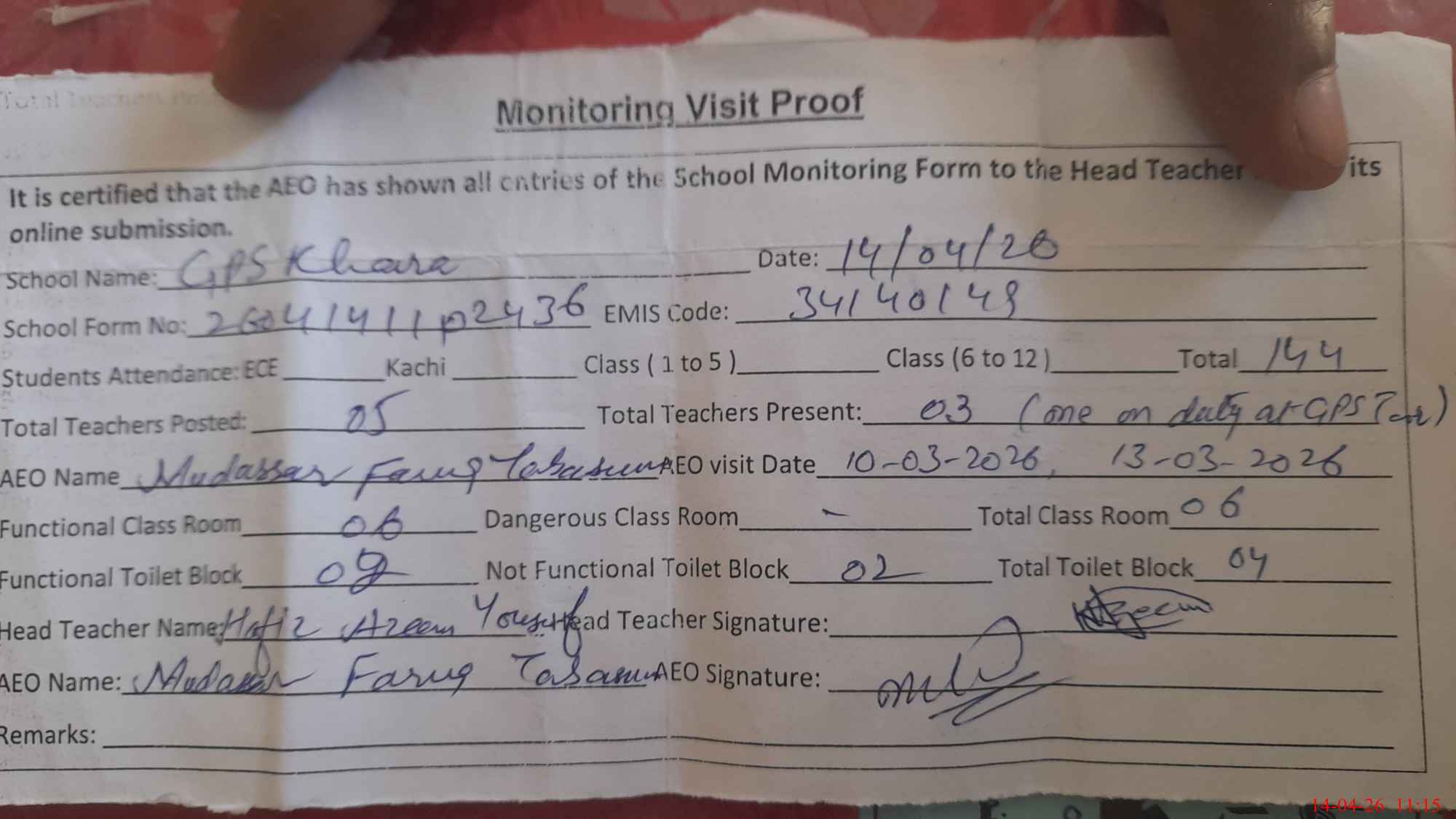 | EMIS Code: 34140149 | Name of School: GPS KHARA | |||