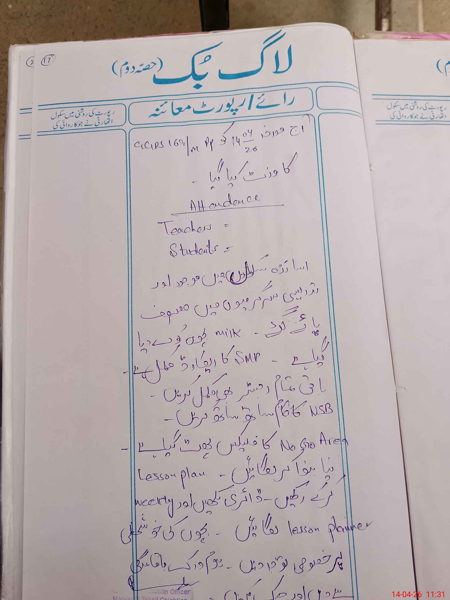 | Attendance Register | Head Teacher | MEA with School | Visit Proof |