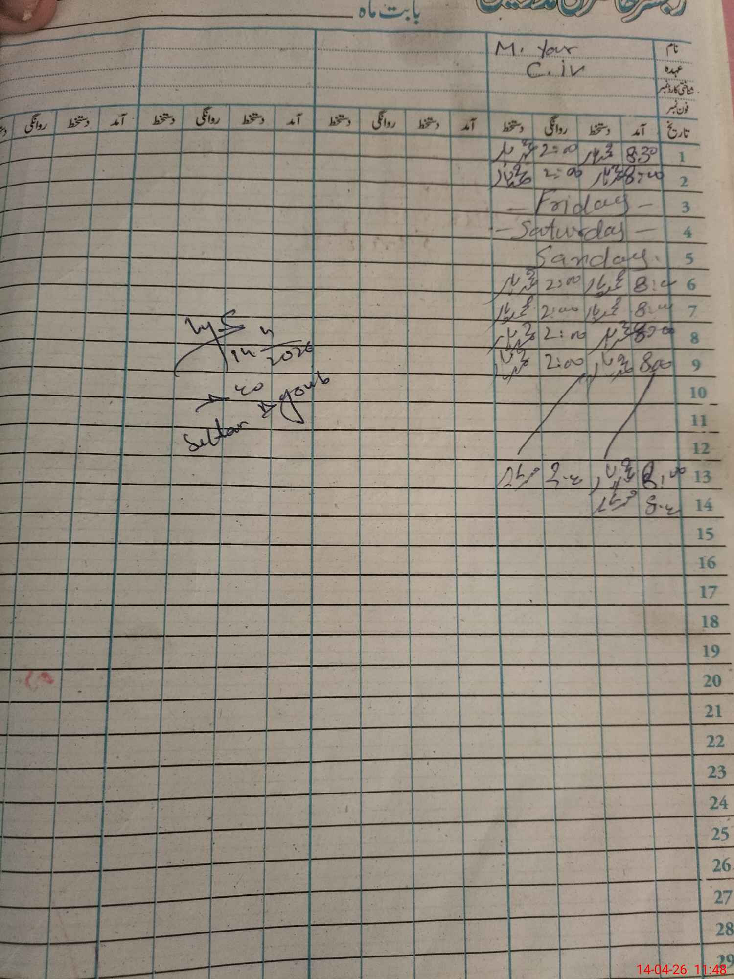 | CNIC | Full Name | Designation | R/C | Absence During Last Calender Month |
