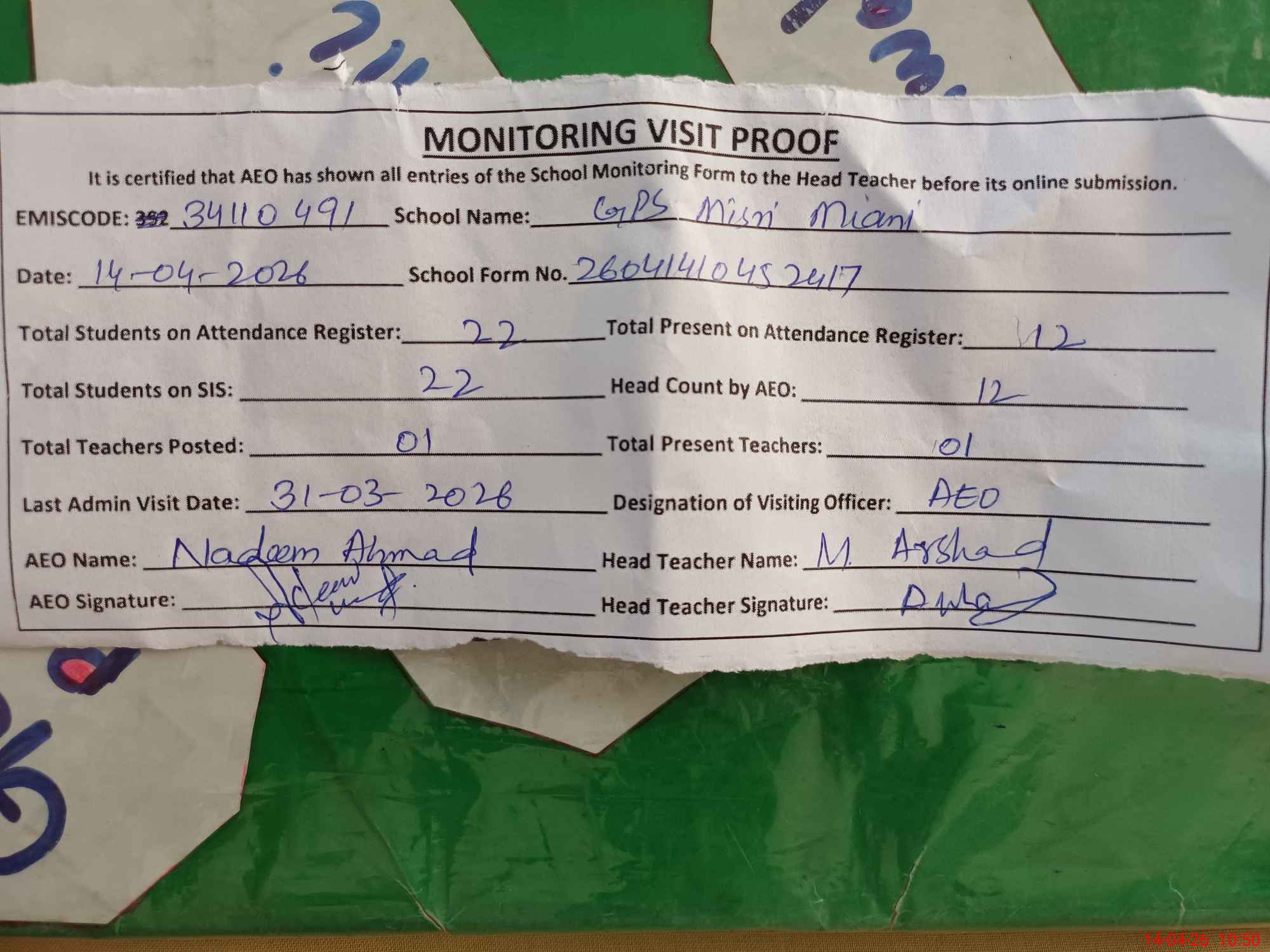 | EMIS Code: 34110491 | Name of School: GPS MISRI MIANI | |||