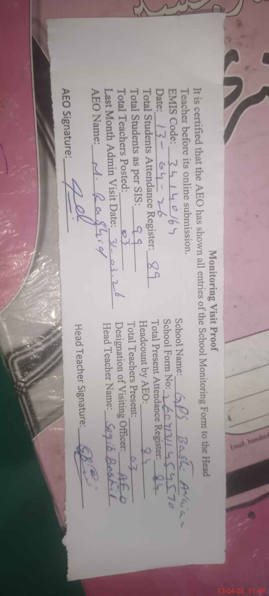| EMIS Code: 34140164 | Name of School: GPS BASTI ARAIAN | |||