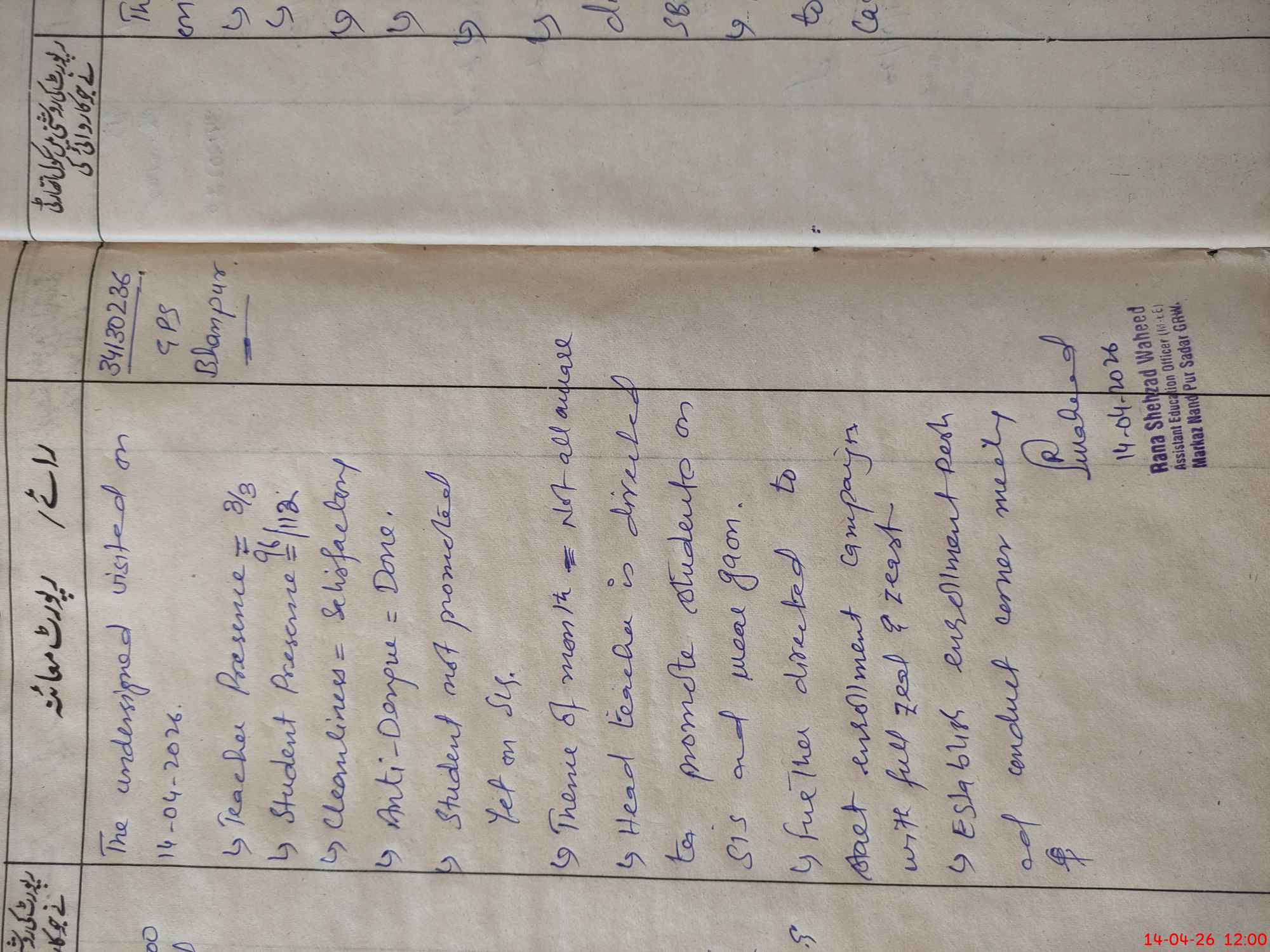 | EMIS Code: 34130236 | Name of School: GPS BHAN PUR | |||