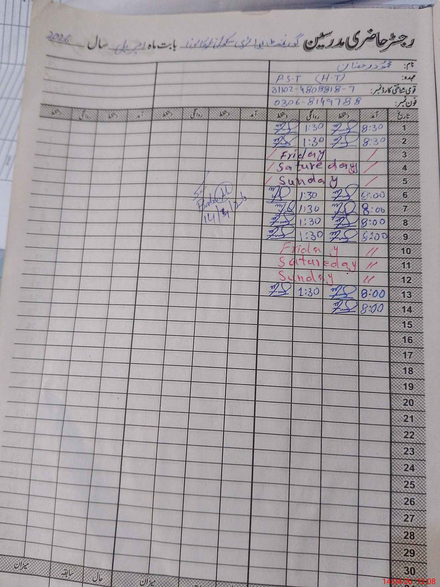 | Name: ME**** RA**** Designation: (School Headmaster's/Headmistress's) PST Phone/Cell Number: 03**** |