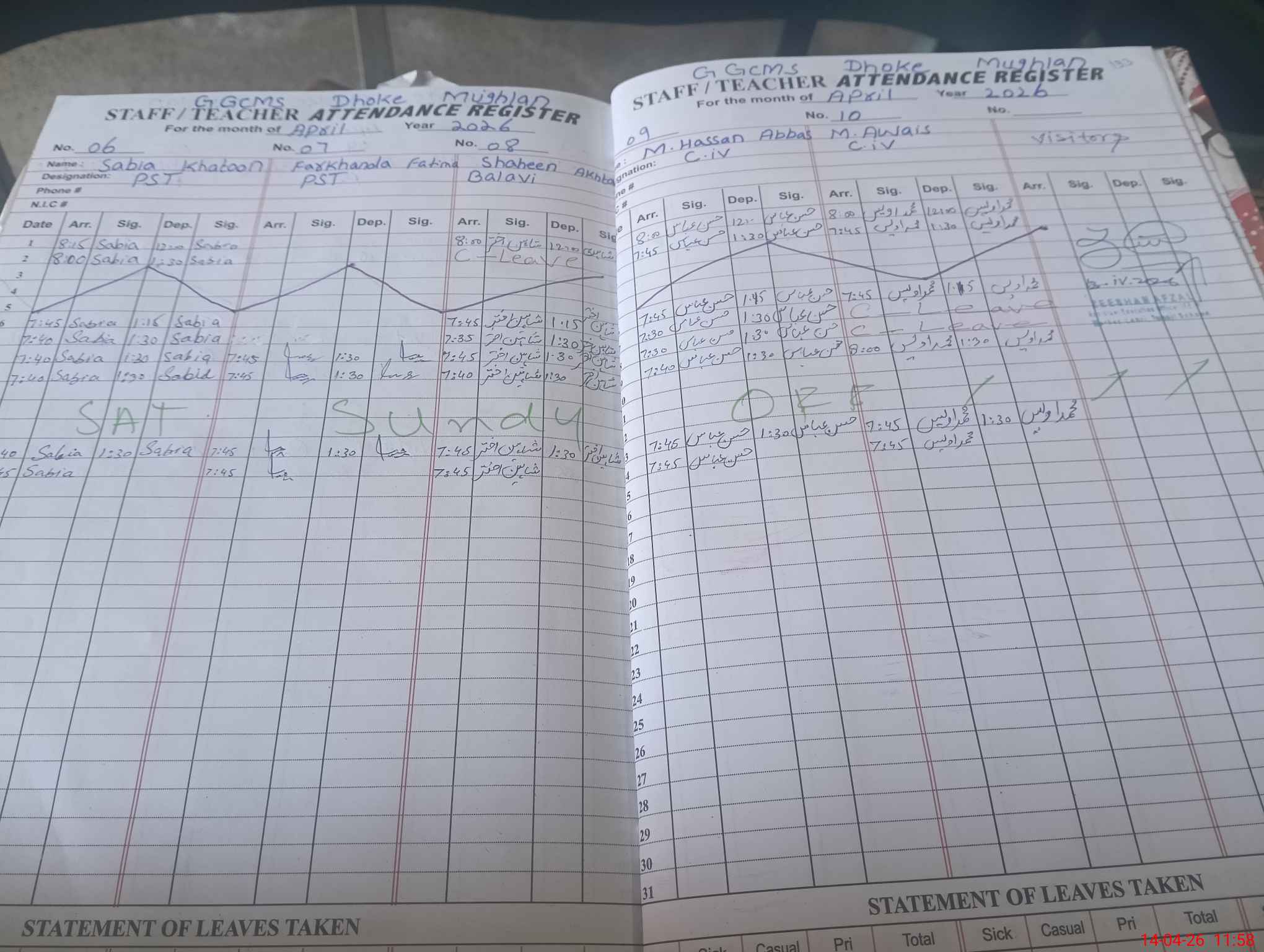 | Leave | Duty | Absent | Maternity | Medical | Ex- Pak |