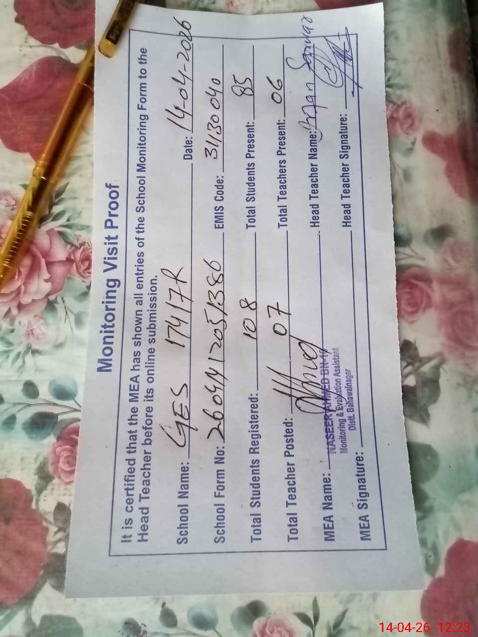 | EMIS Code: 31130040 | Name of School: GES CHAK 174/7-R | |||