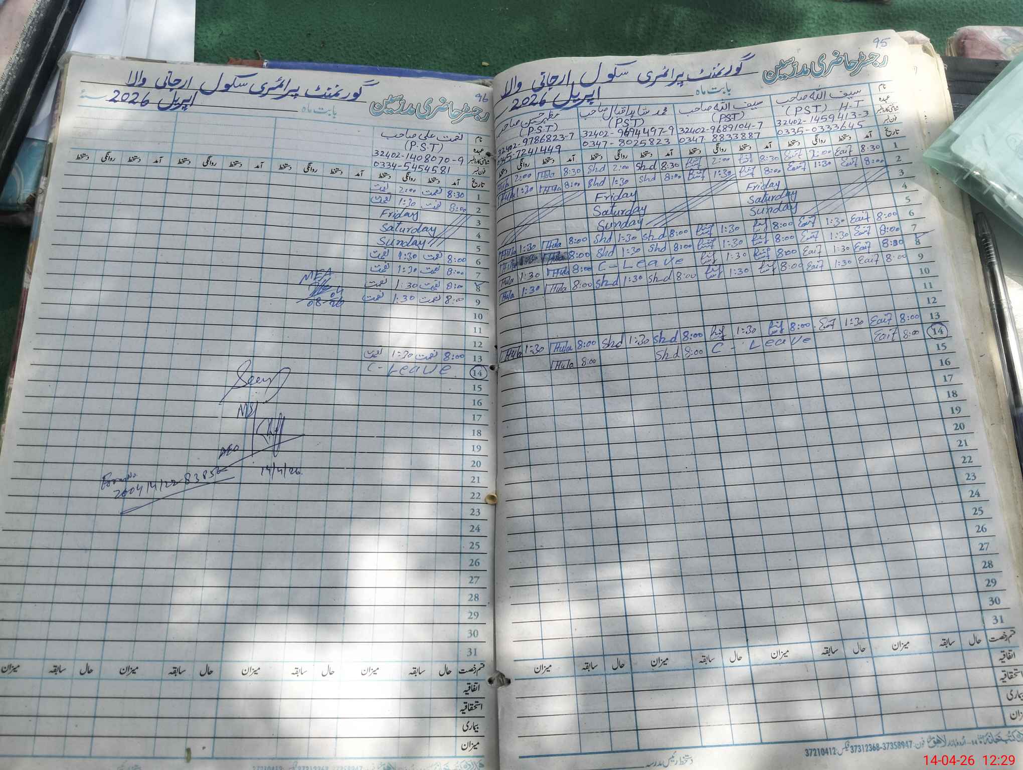 | CNIC | Full Name | Designation | R/C | Absence During Last Calender Month |