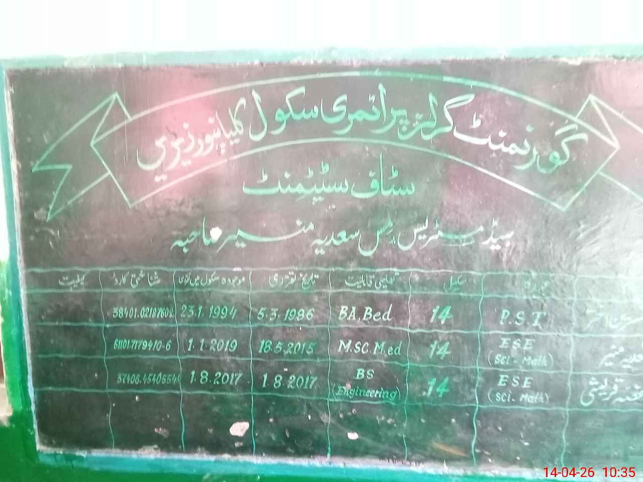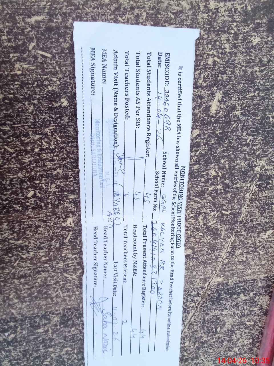 | EMIS Code: 38470698 | Name of School: GGPS KALYAN PUR ZEREEN | |||