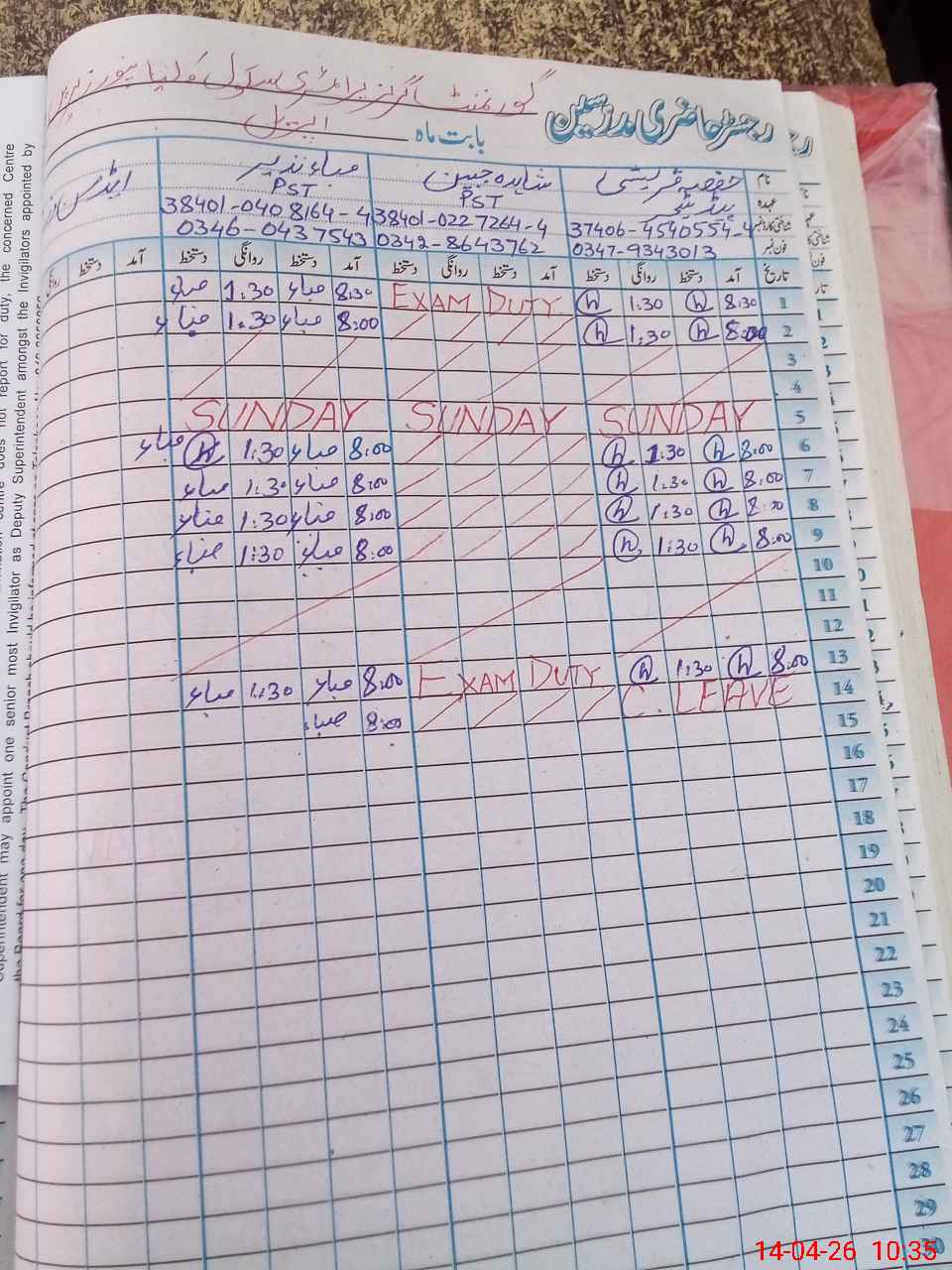 | 38**** | Sh**** Ja**** | PST Arts | Regular | 0 | 0 | 0 | 0 | 0 | 0 | 0 | 0 | 0 | Exam Duty |