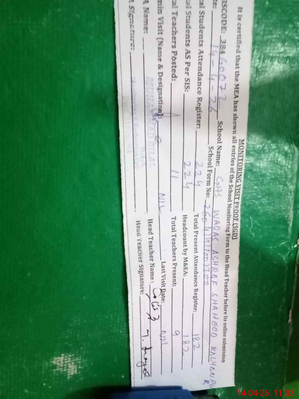 | EMIS Code: 38470072 | Name of School: GHS WAQAS ASHRAF SHAHEED KALYAN PUR | |||