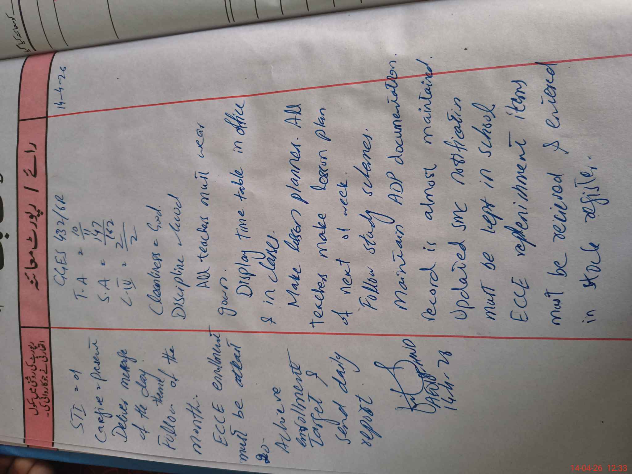 | Attendance Register | Head Teacher | MEA with School | Visit Proof |