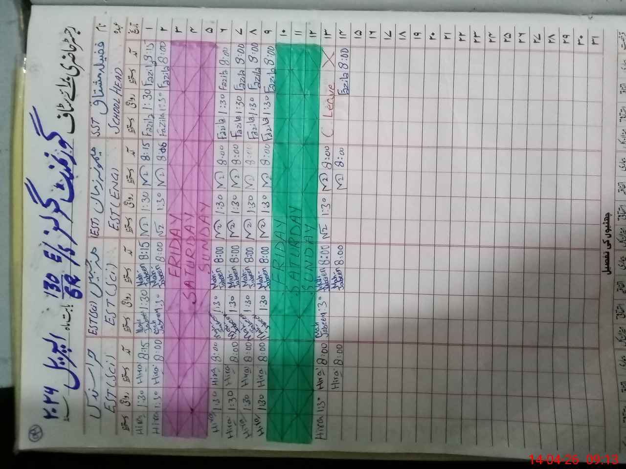 | Leave | Duty | Absent | Maternity | Medical | Ex- Pak |