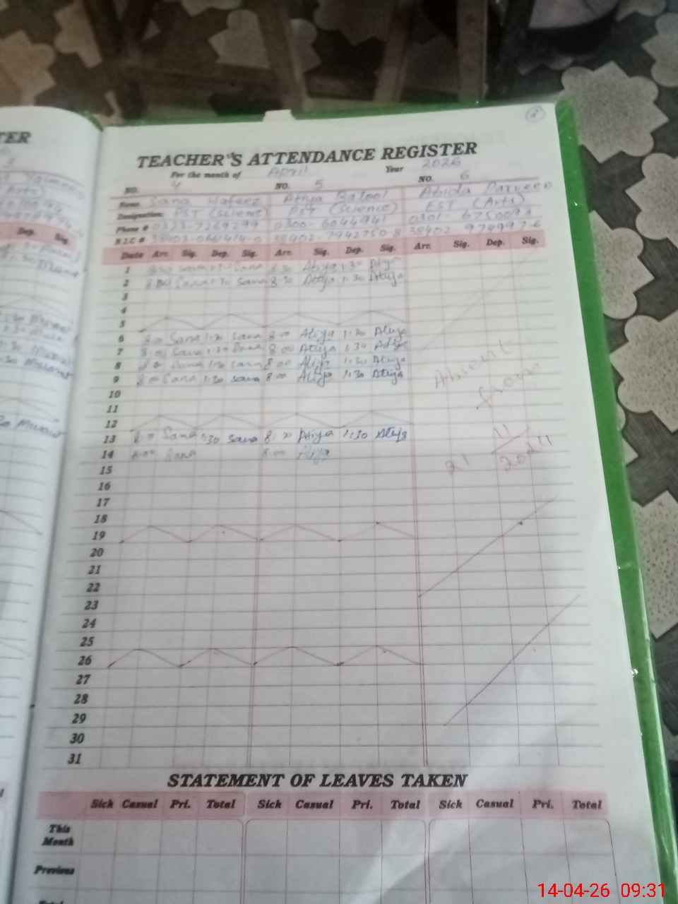 | 38**** | Ab**** Pe**** | EST General Arts | Regular | 0 | 0 | 31 | 0 | 0 | 0 | 0 | 0 | 0 | Absent (Un-Authorized) |