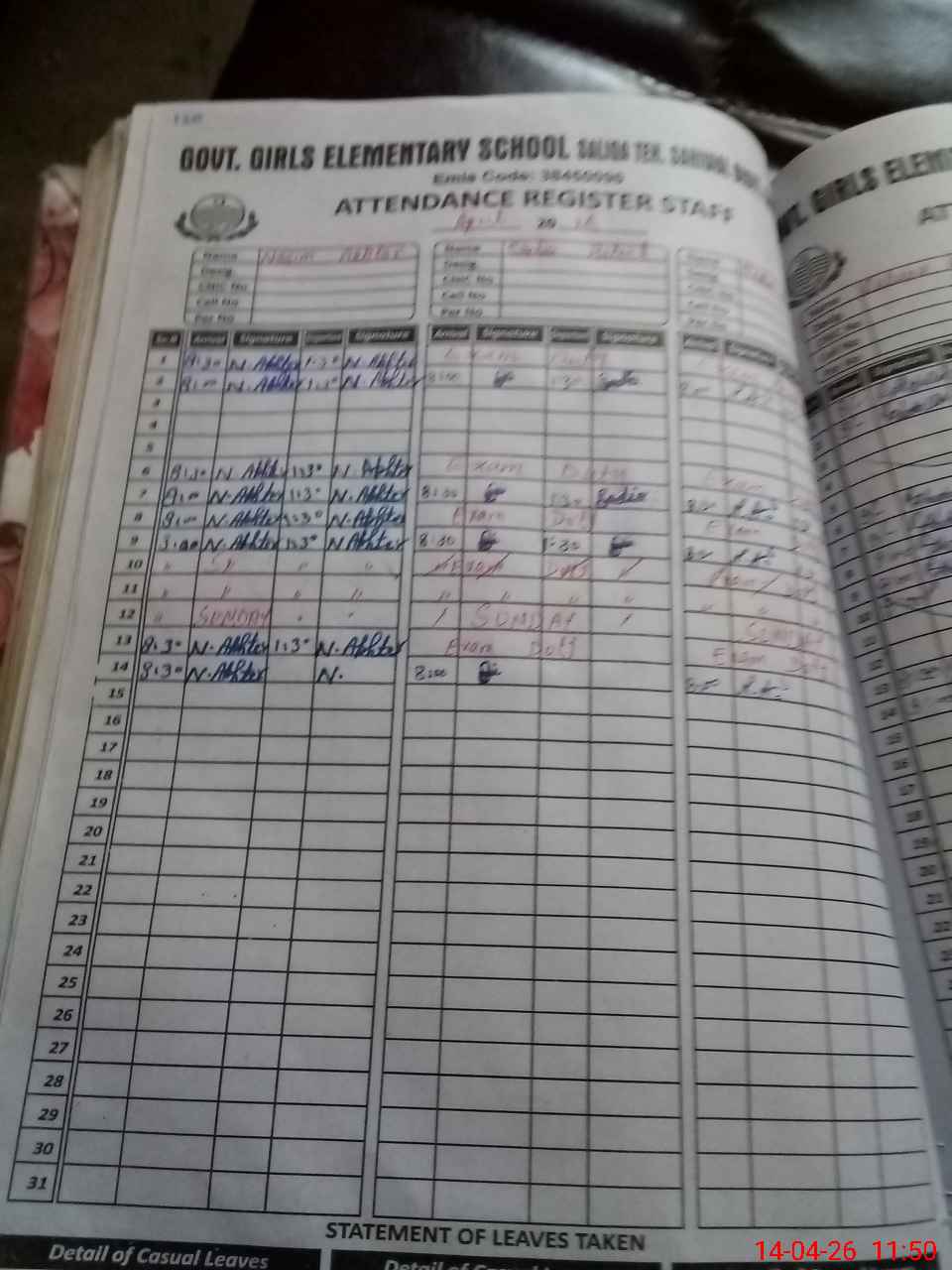| 38**** | So**** Ha**** | EST Science | Regular | 0 | 0 | 0 | 0 | 0 | 0 | 0 | 0 | 0 | Exam Duty |