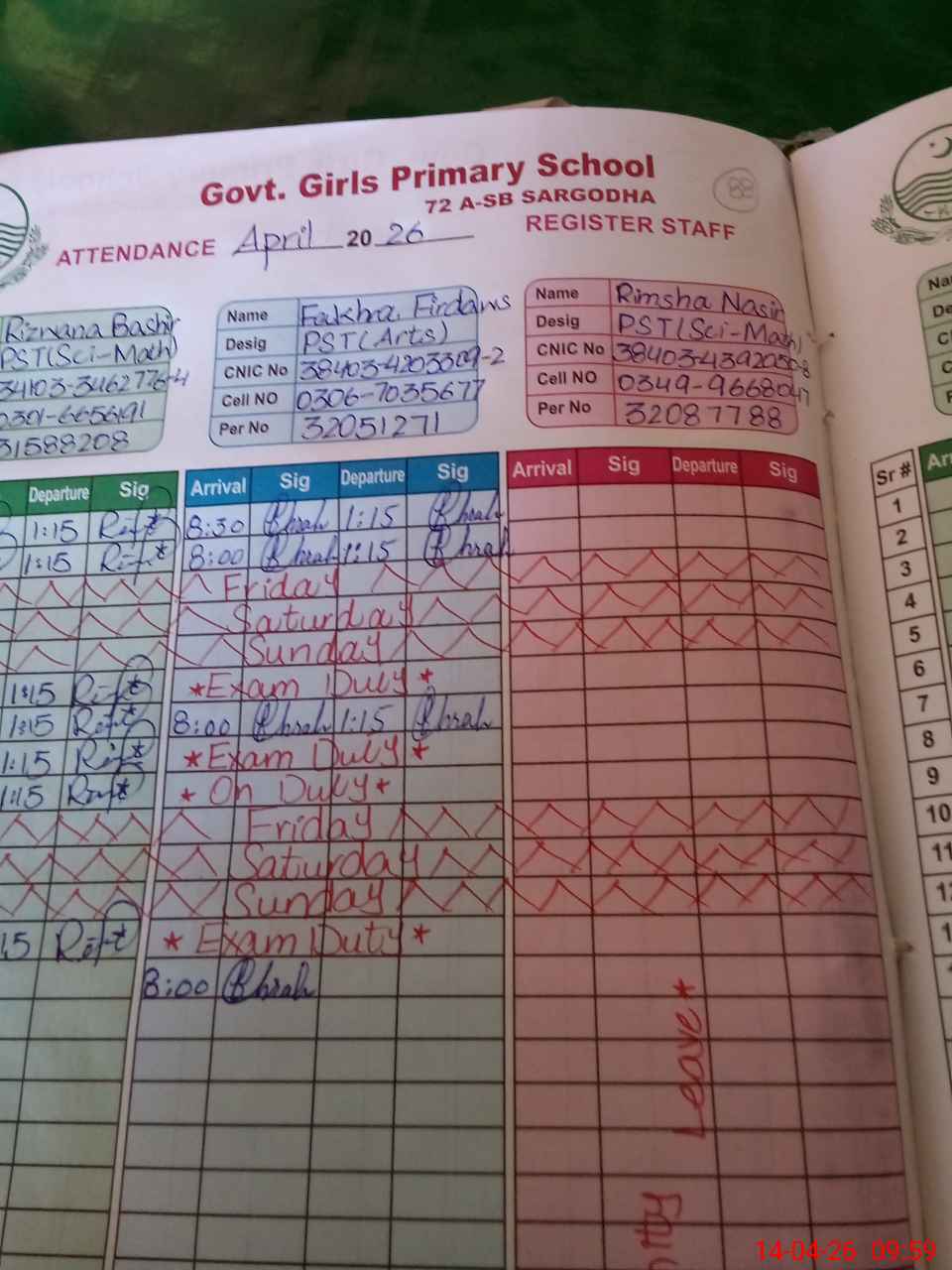| 38**** | Ri**** Na**** | PST Science/Maths | Regular | 16 | 0 | 0 | 14 | 0 | 0 | 0 | 0 | 2 | Maternity |