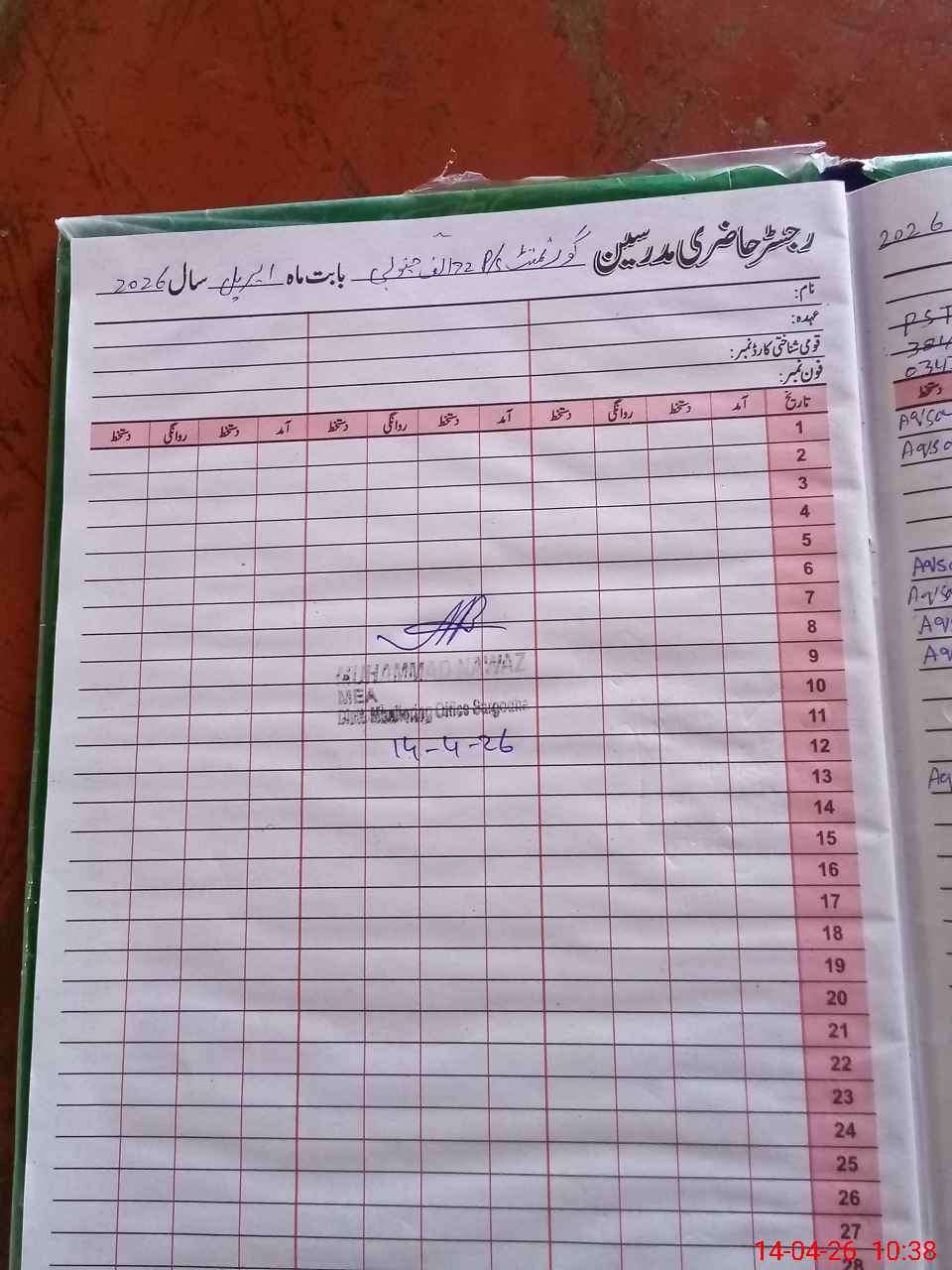 | Name: MAm**** Sa**** Designation: (School Headmaster's/Headmistress's) PST Phone/Cell Number: 03**** |