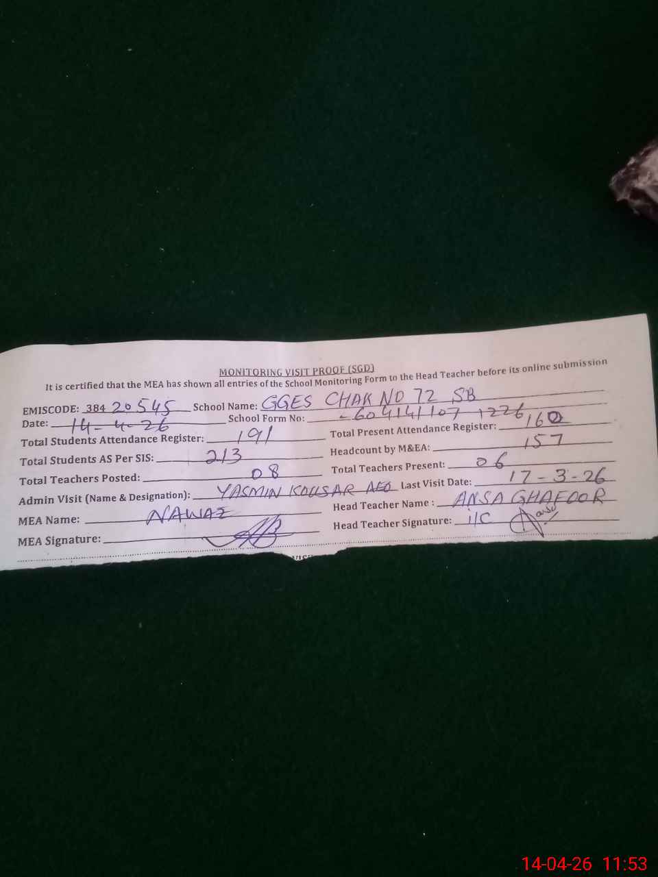 | EMIS Code: 38420545 | Name of School: GGES CHAK NO.72 SB | |||