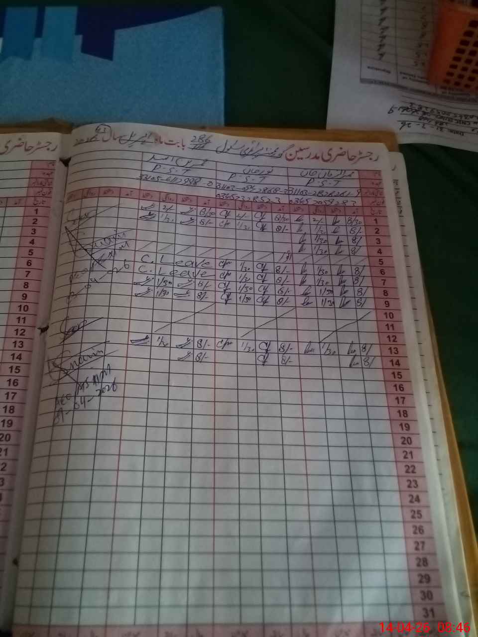| CNIC | Full Name | Designation | R/C | Absence During Last Calender Month |