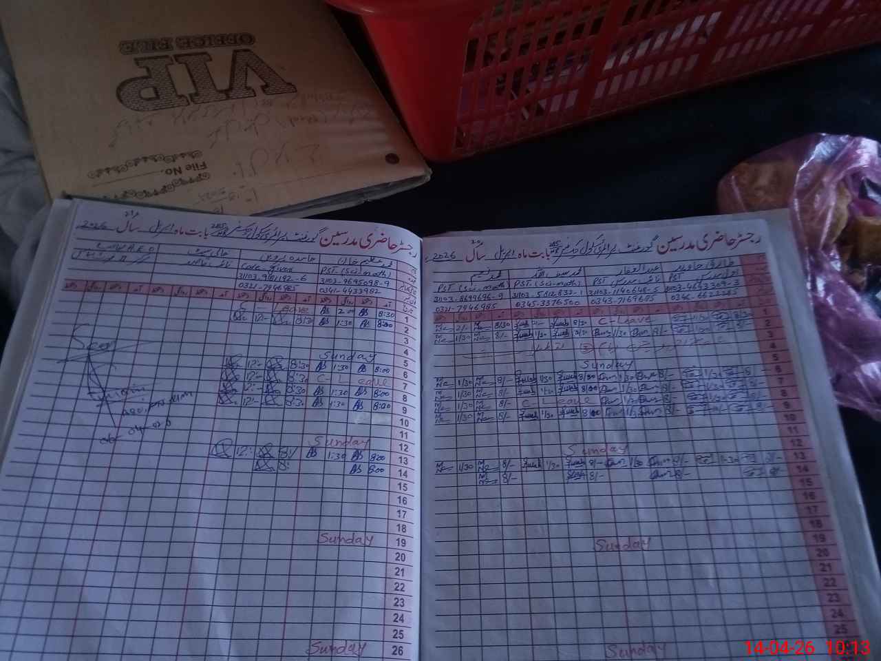 | CNIC | Full Name | Designation | R/C | Absence During Last Calender Month |