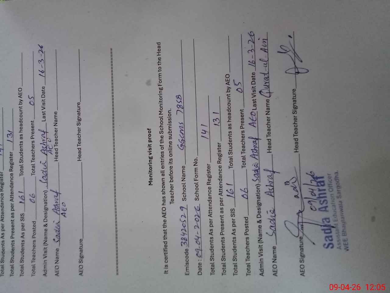 | EMIS Code: 38420529 | Name of School: GGCMS CHAK NO.78 SB | |||