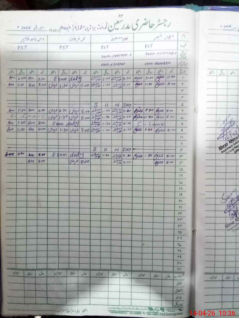 | Name: Ej**** Qa**** Designation: (School Headmaster's/Headmistress's) PST Phone/Cell Number: 03**** |