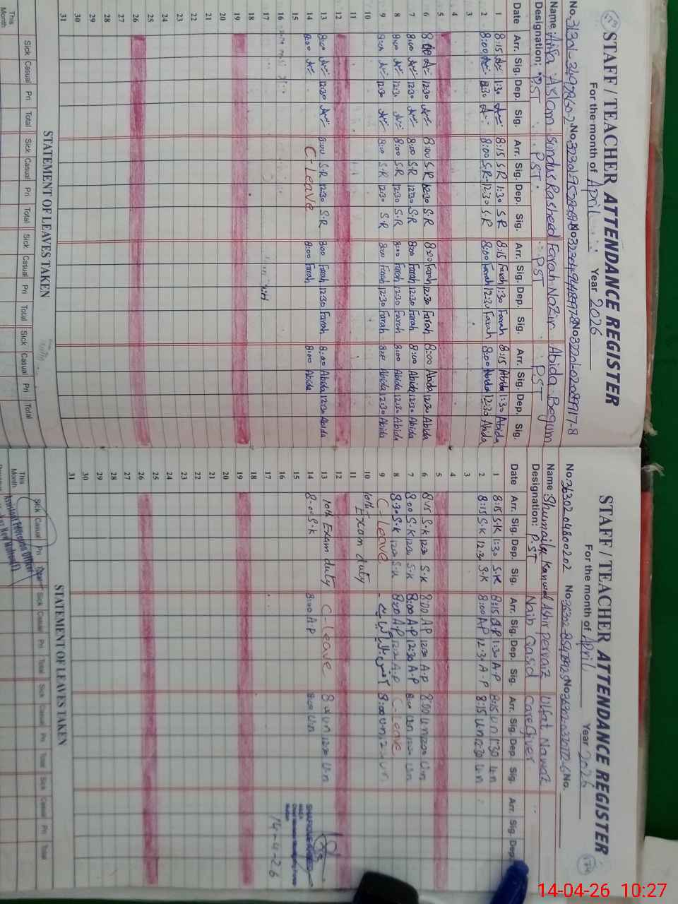 | 32**** | Su**** Ra**** | PST Science/Maths | Regular | 0 | 0 | 0 | 0 | 0 | 0 | 0 | 0 | 0 | Casual |