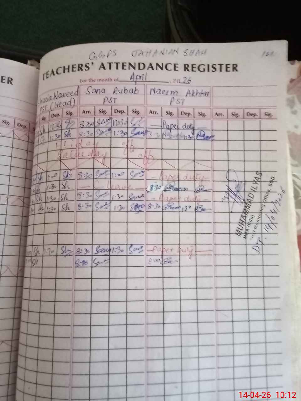 | Name: SH**** NA**** Designation: (School Headmaster's/Headmistress's) PST Phone/Cell Number: 03**** |
