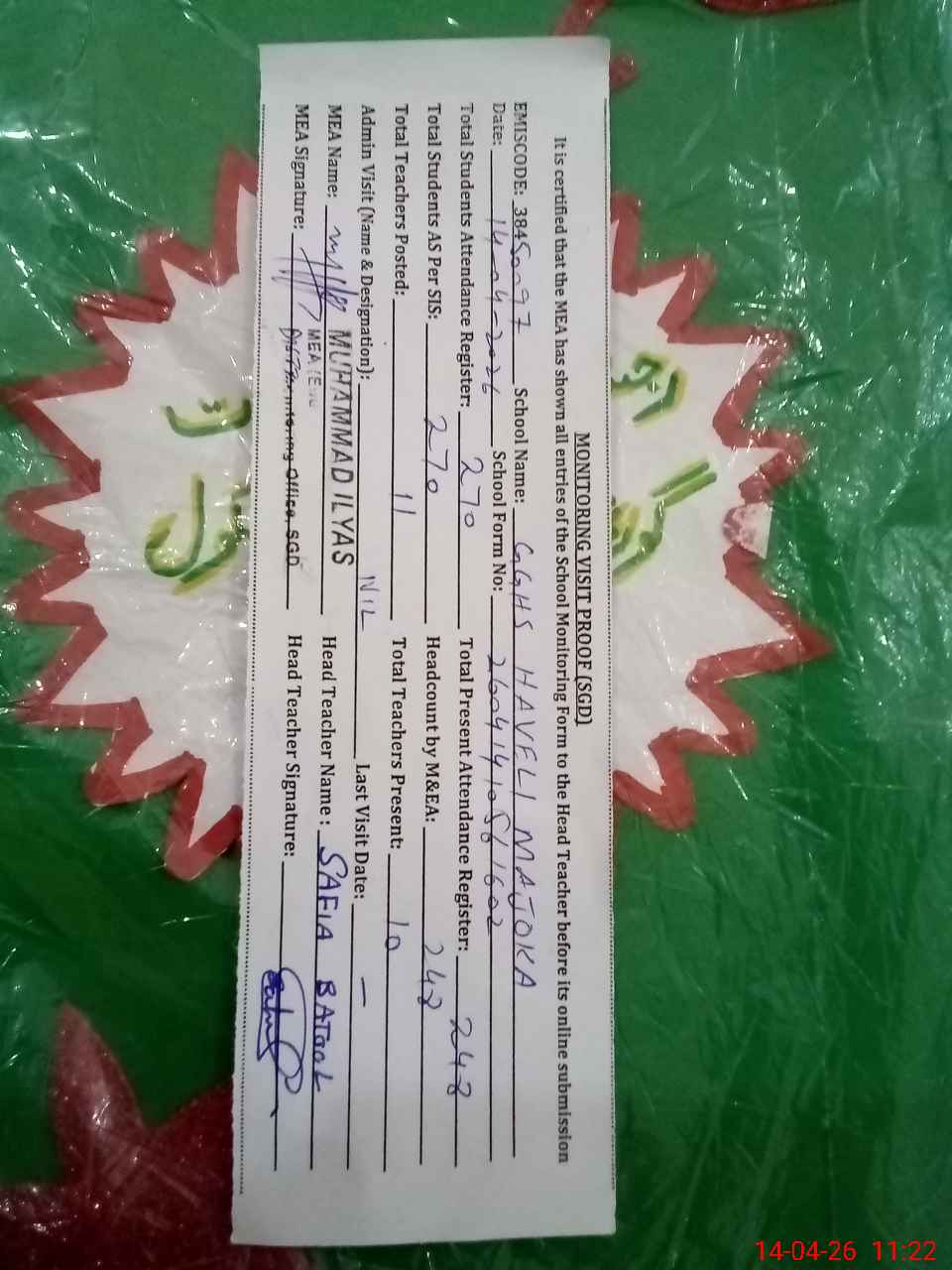 | EMIS Code: 38450097 | Name of School: GGHS HAVELI MAJOKA | |||
