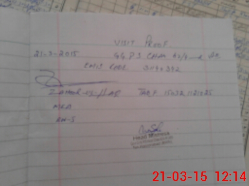 | Monitoring Date: 21-03-2015 | Start Time: 21-03-2015 11:55 AM | End Time: 21-03-2015 12:19 PM | Name of MEA: Za**** BN**** | |