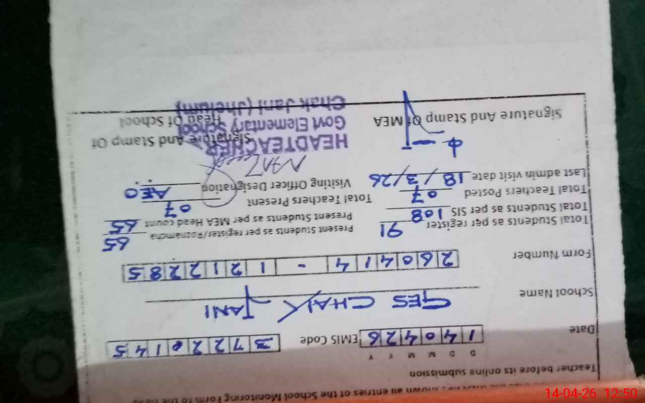 | Attendance Register | Head Teacher | MEA with School | Visit Proof |