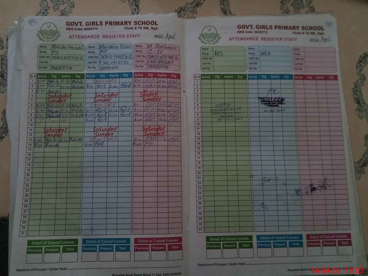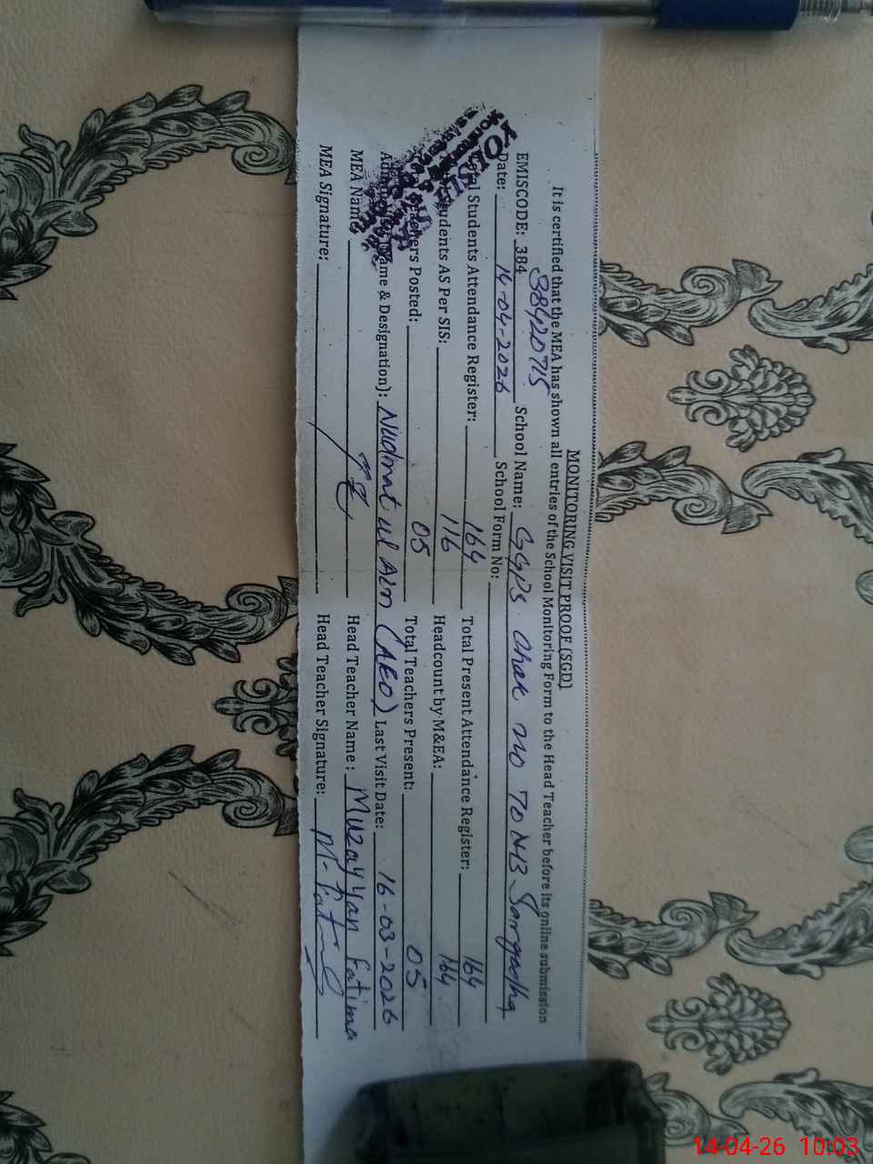 | EMIS Code: 38420715 | Name of School: GGPS CHAK NO.70 NB | |||
