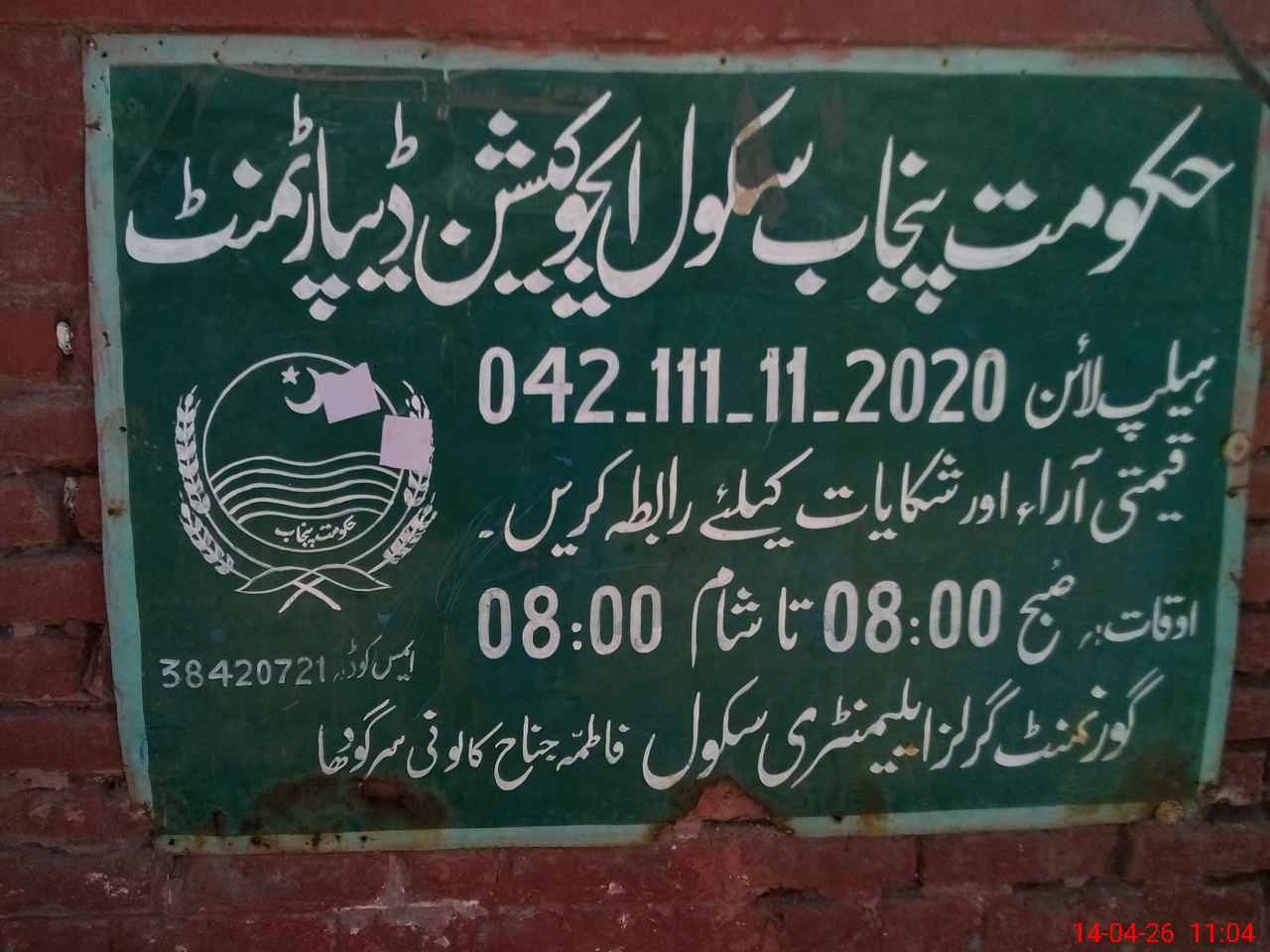 | EMIS Code: 38420721 | Name of School: GGES FATIMA JINNAH COLONY | |||