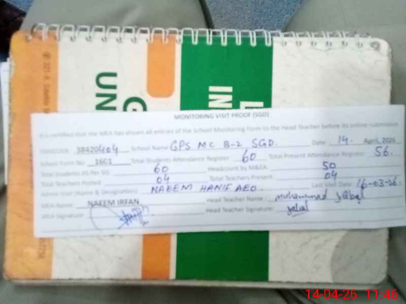 | EMIS Code: 38420404 | Name of School: GPS MC BLOCK NO. 2 SARGODHA | |||