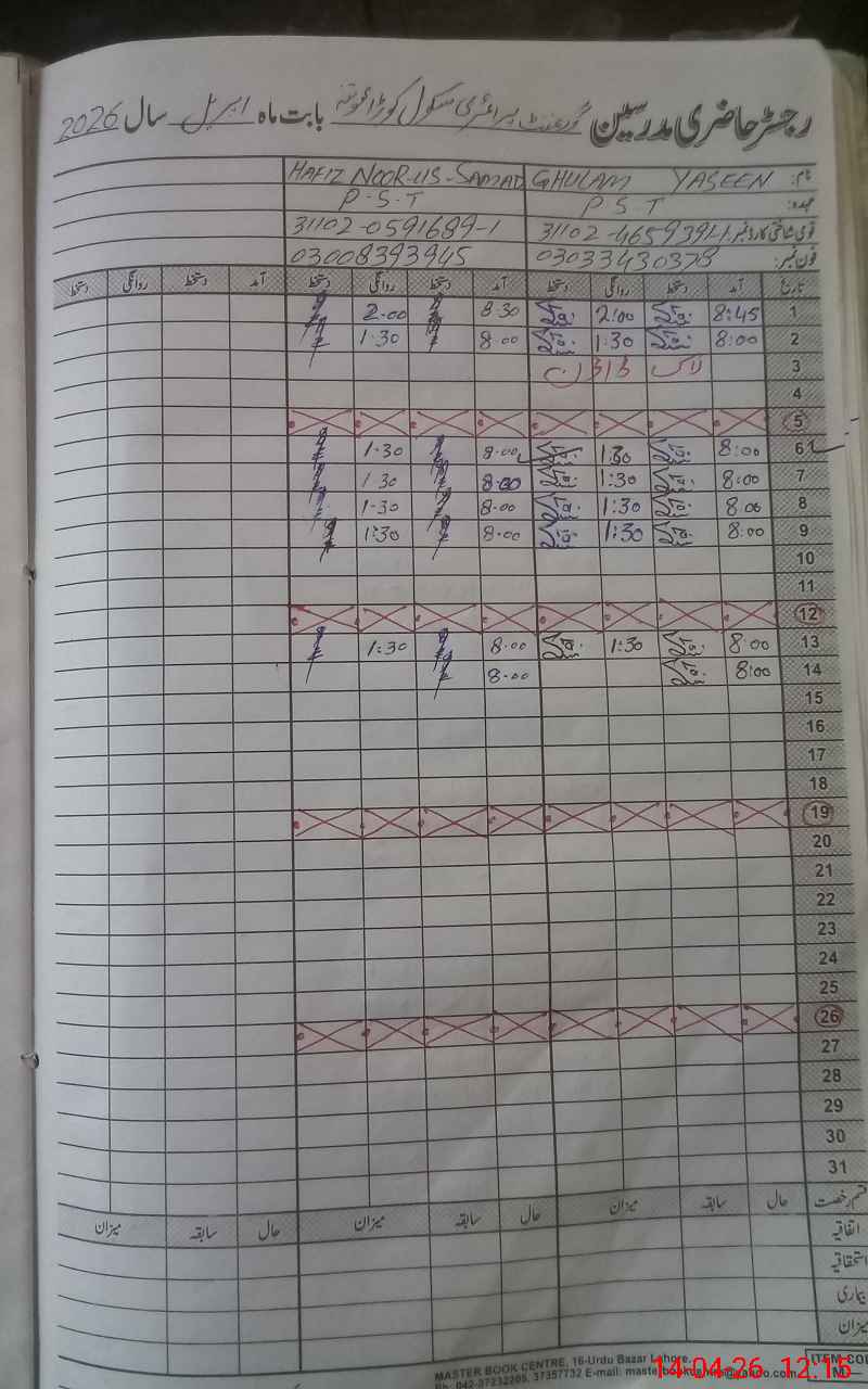 | CNIC | Full Name | Designation | R/C | Absence During Last Calender Month |