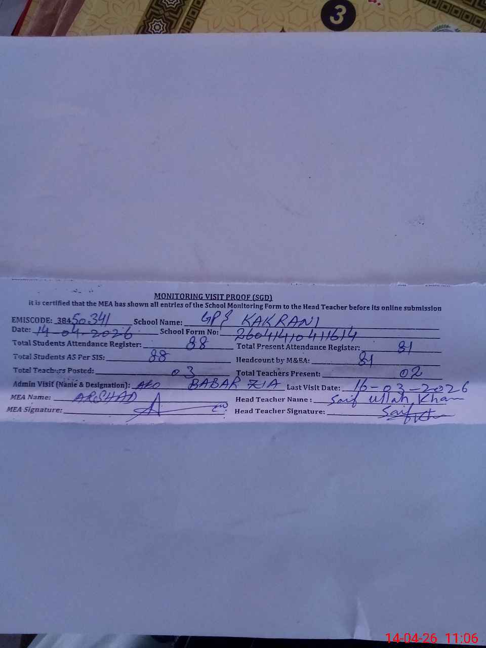 | EMIS Code: 38450341 | Name of School: GPS KAKRANI | |||