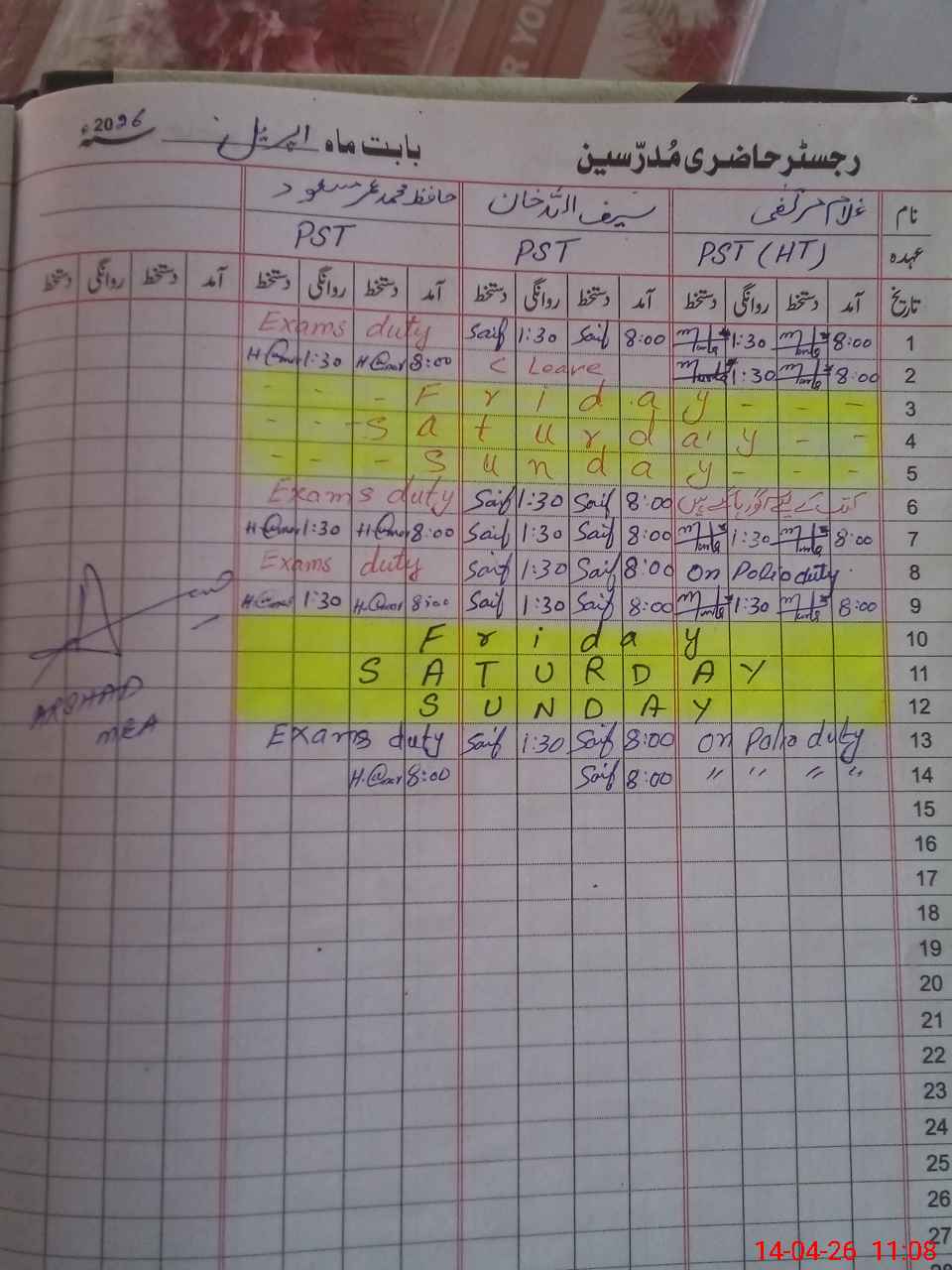 | Name: GH**** MU**** Designation: (School Headmaster's/Headmistress's) PST Phone/Cell Number: 03**** |