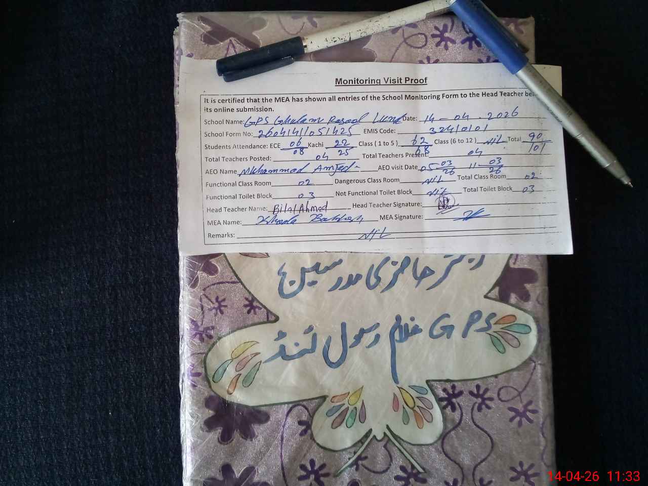 | EMIS Code: 32410101 | Name of School: GPS GHULAM RASOOL LUND | |||