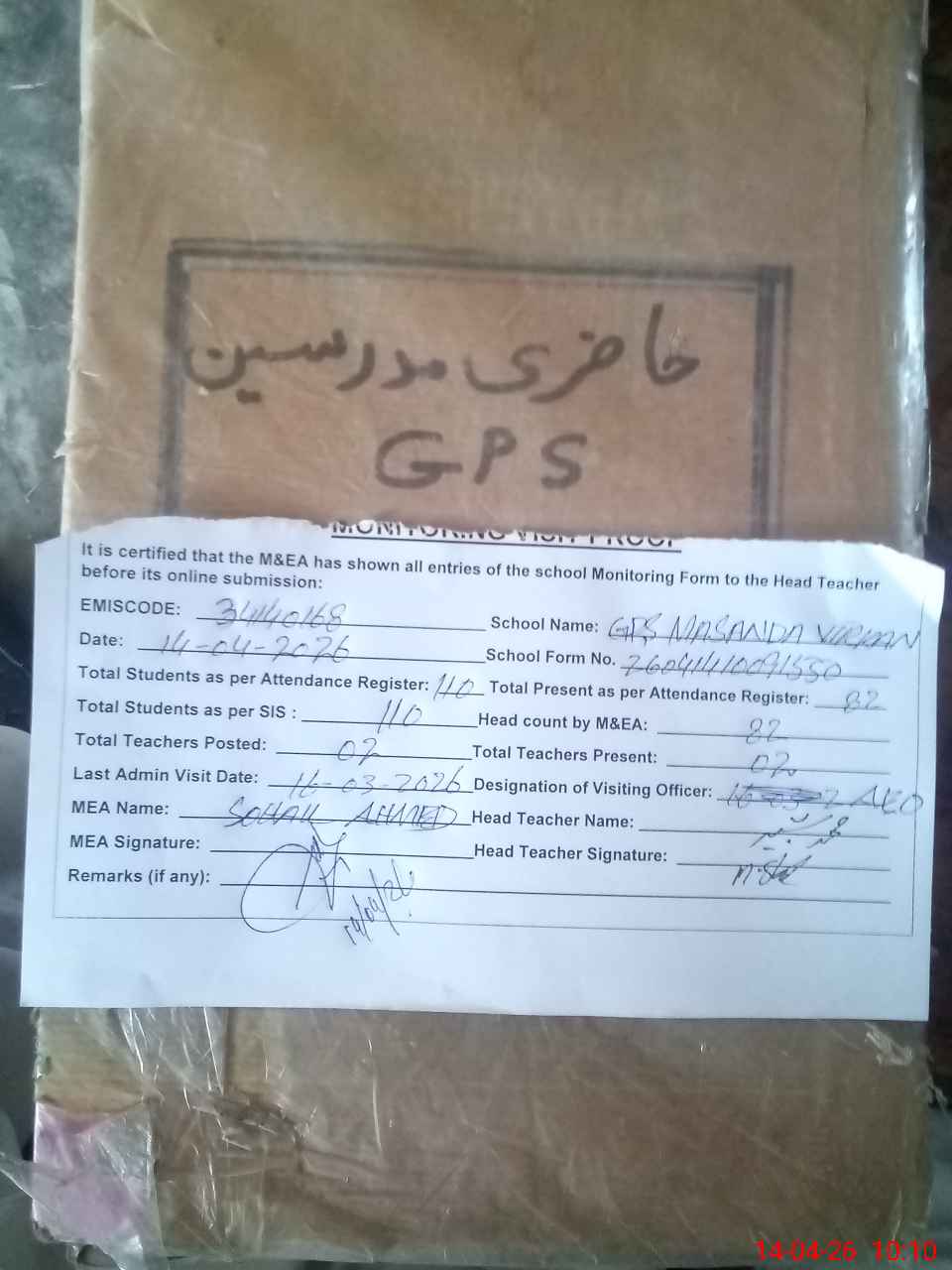 | EMIS Code: 34140168 | Name of School: GPS MASANDA VIRKAN | |||