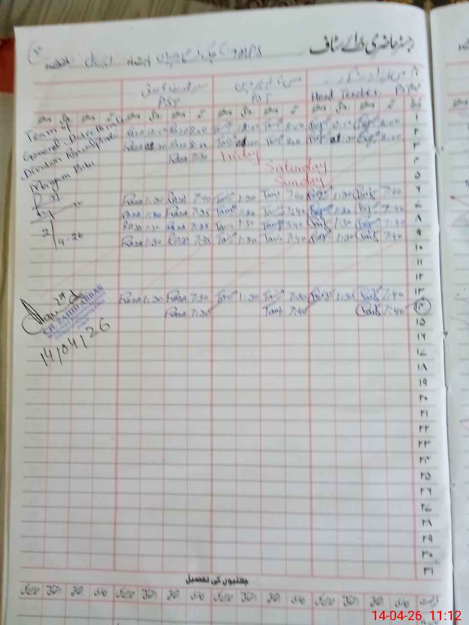 | CNIC | Full Name | Designation | R/C | Absence During Last Calender Month |