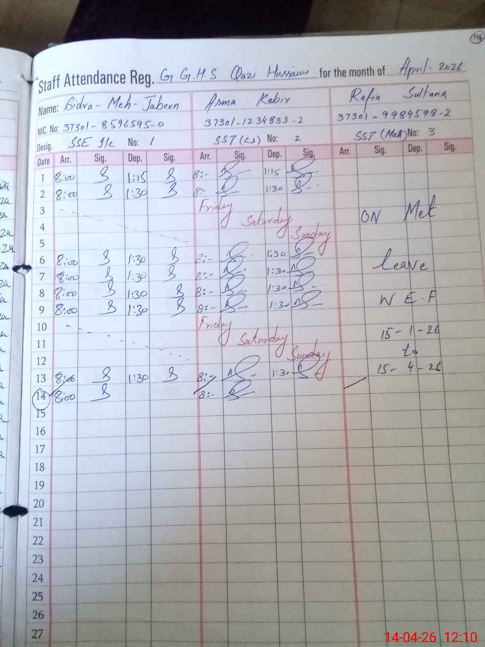 | 37**** | Ra**** Su**** | SST Science | Regular | 31 | 0 | 0 | 31 | 0 | 0 | 0 | 0 | 0 | Maternity |