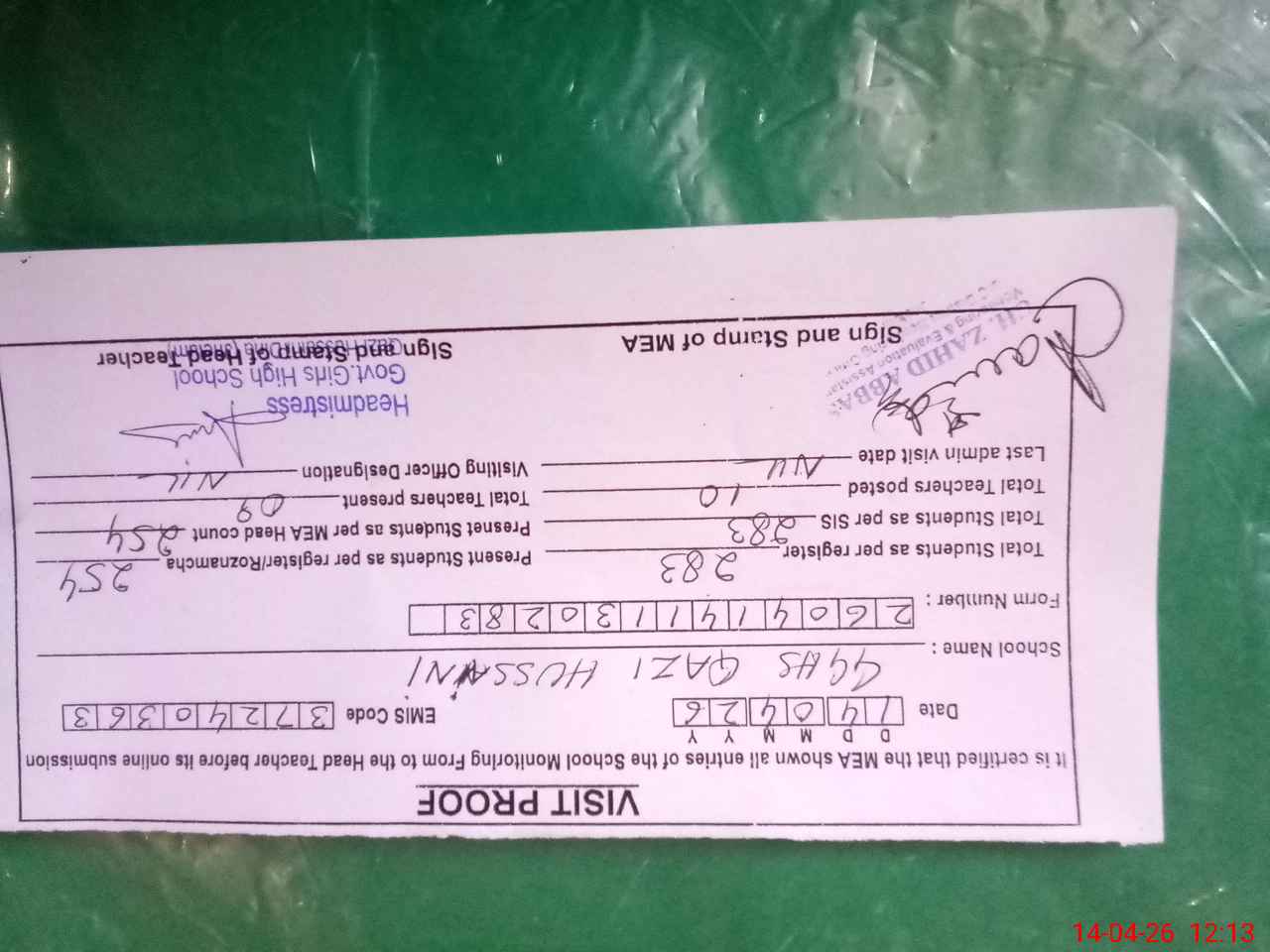 | EMIS Code: 37240363 | Name of School: GGHS QAZI HUSSAINI | |||