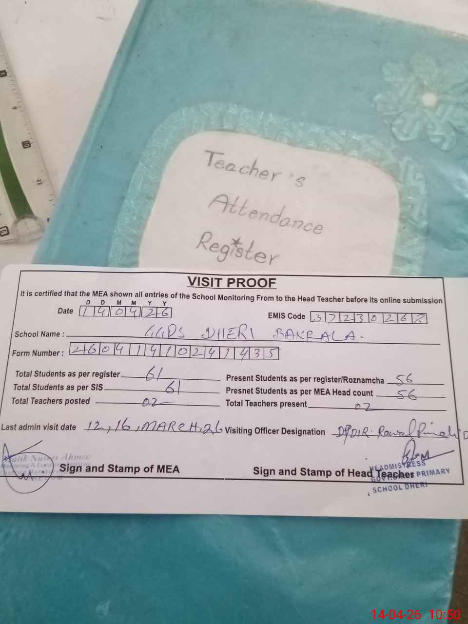 | EMIS Code: 37230268 | Name of School: GGPS DHERI BAKRALA | |||