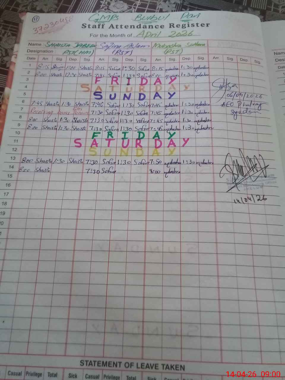 | Name: SH**** JA**** Designation: (School Headmaster's/Headmistress's) PST Phone/Cell Number: 03**** |