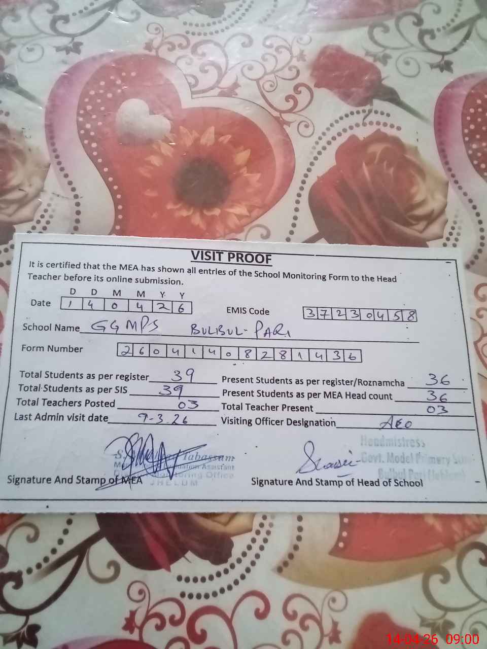 | EMIS Code: 37230458 | Name of School: GGMPS BUL BUL PARI | |||